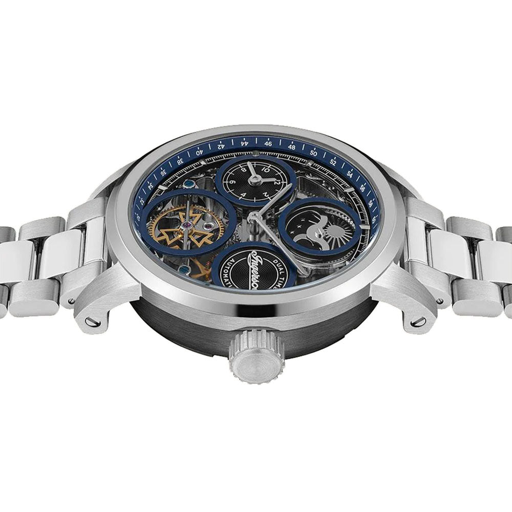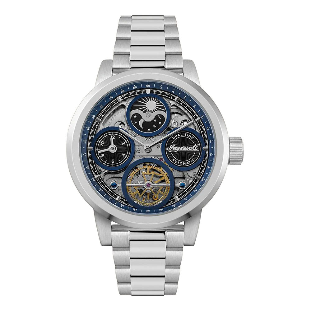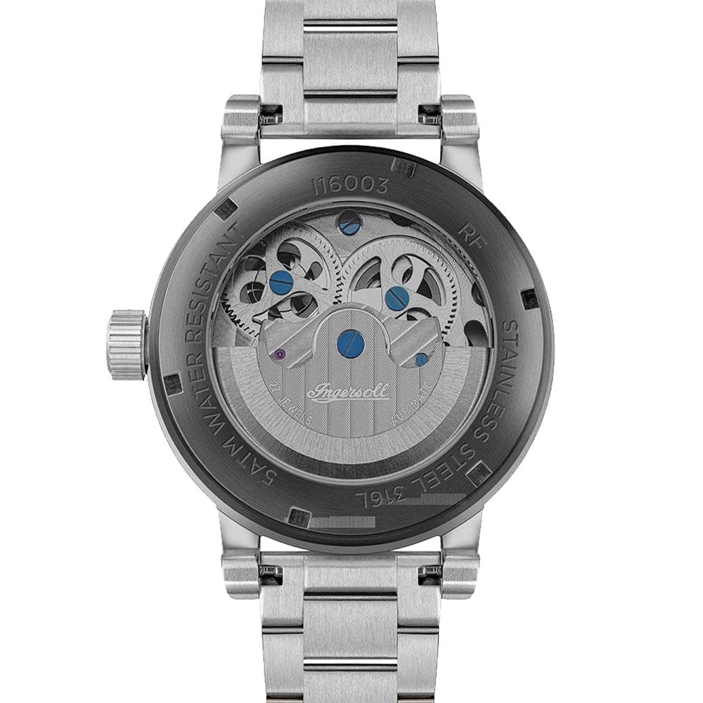 The Ingersoll The Arc I16003 embodies a perfect blend of sophistication and contemporary flair. A silver touch to its blue hues rightly complementing its retro yet sophisticated take for analog watches.