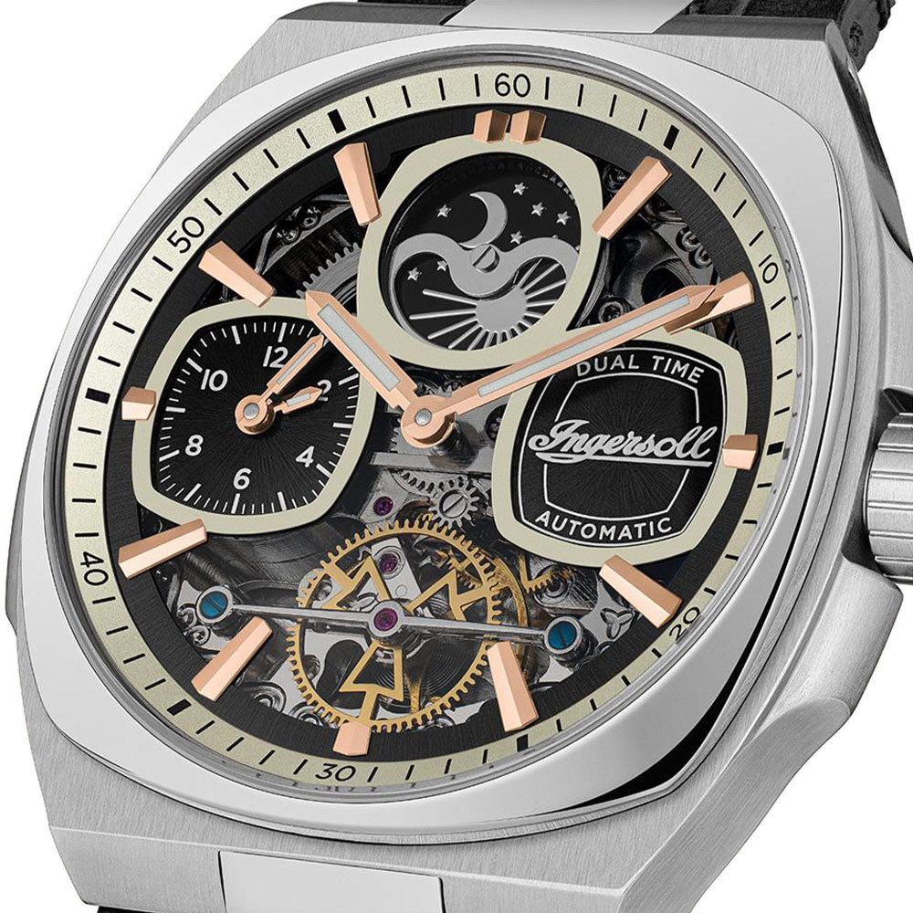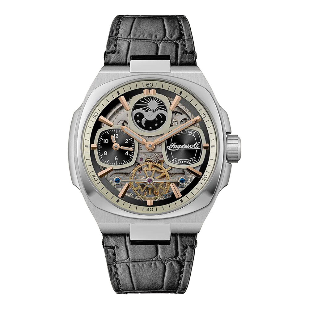 The Ingersoll The Spirit I15801 is a testament to classic elegance and mechanical mastery designed for the modern gentleman. A sophisticated day-night subdial and dual-time display add practicality, while the black leather strap enhances its timeless charm. With 5 ATM water resistance, this watch is built for durability without compromising style. The Spirit embodies tradition, innovation, and precision—making it a distinguished addition to any collection.