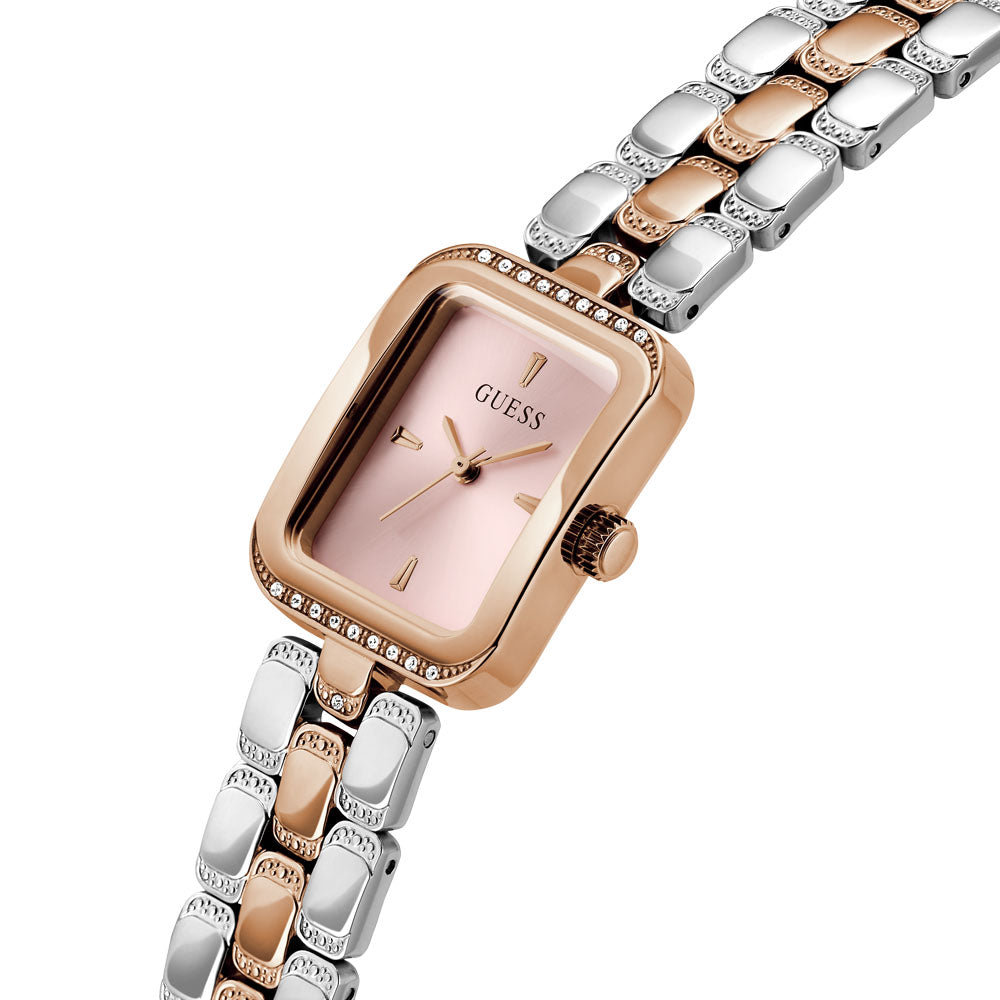The perfect new jewelry staple for your watch wardrobe! This tiny tank case is adorned with a touch of crystal and is paired with a pretty bracelet that features beading detail. Self-adjustable g-links make this style easy to size. Great on its own or stacked with other jewelry!