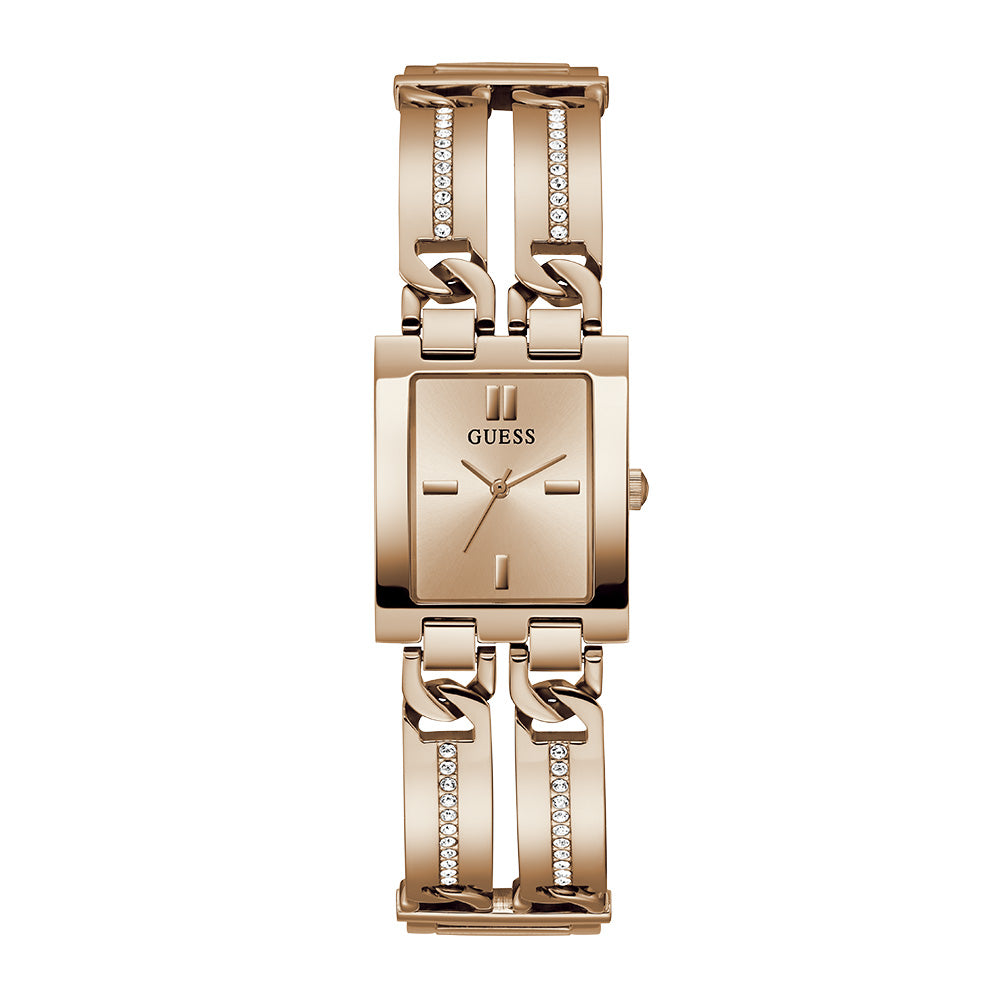 A modern take on a classic style, this look combines a sleek ID chain with a touch of glitz - great on its own or layered with other jewelry!