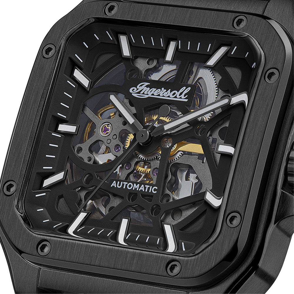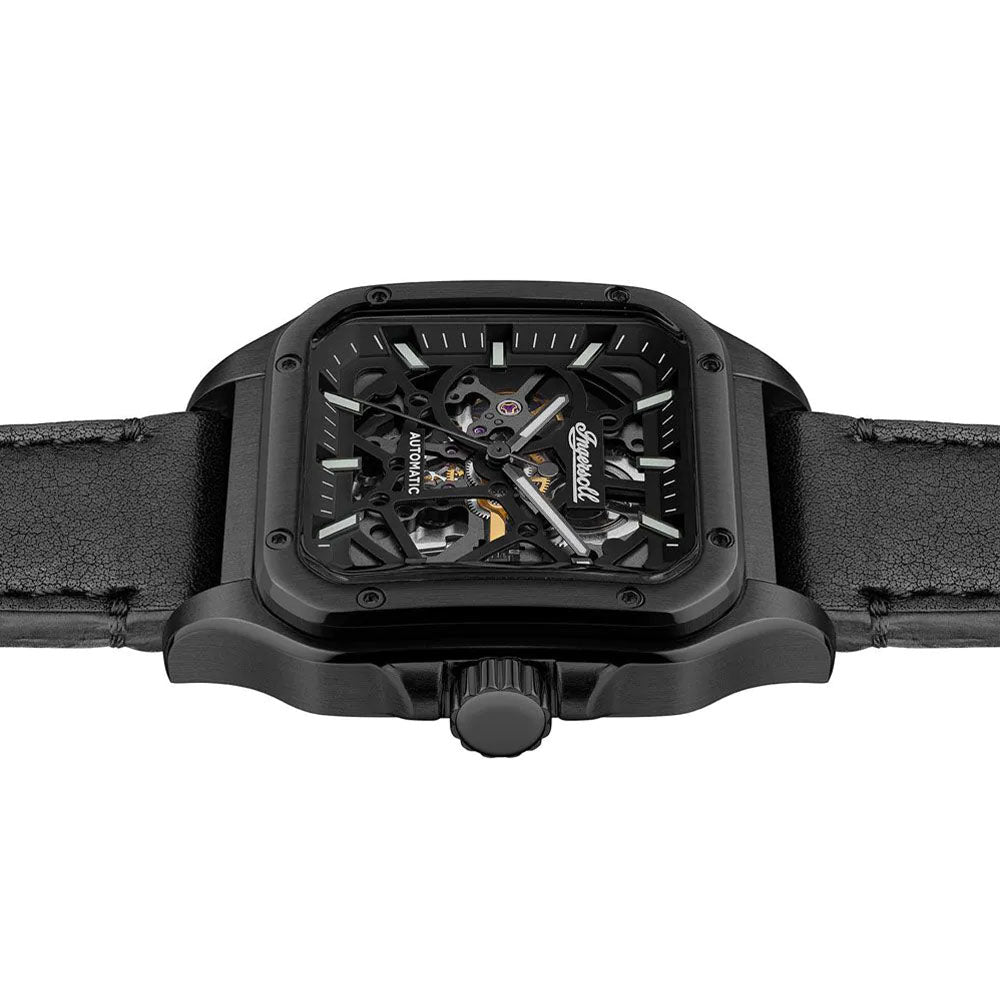 Alluring and assertive, the Ingersoll I14504 embodies a spirit of adventure with a touch of modern elegance. Its striking black stainless steel case, shaped into a confident square design, commands attention while maintaining a refined edge. The deep black dial, paired with luminous hands and indexes, ensures optimal readability in any setting—whether under city lights or on a midnight escapade.